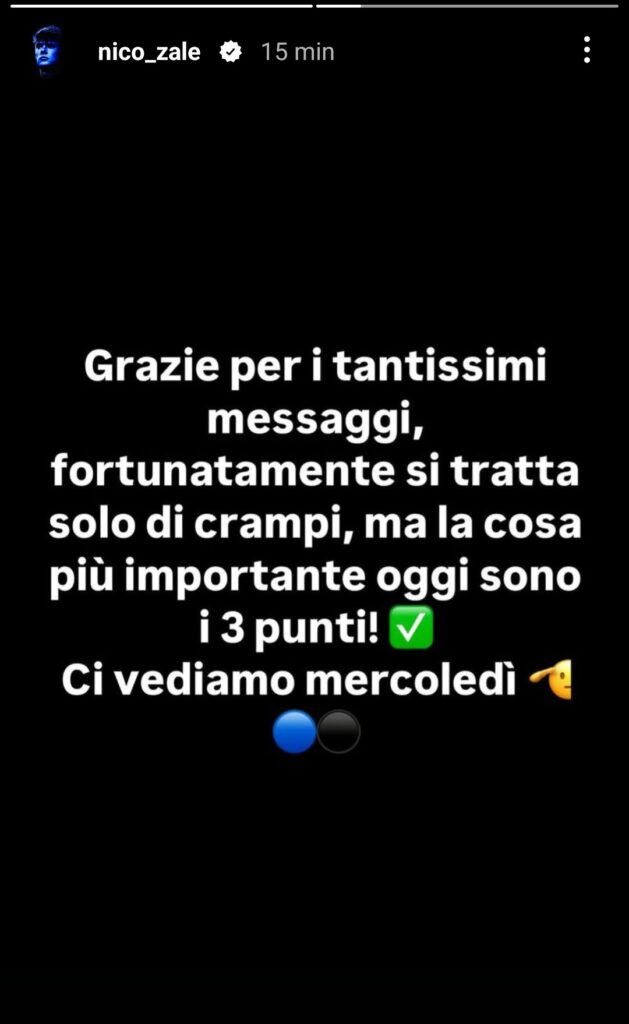 Niestety, w 65. minucie padł na murawę bez kontaktu z rywalem. Chwilę później opuścił boisko w asyście lekarzy. Sytuacja wyglądała groźnie, ale sam piłkarz rozwiał wątpliwości. „Dziękuję za wszystkie wiadomości. Na szczęście to tylko skurcze. Najważniejsze dziś to 3 punkty” – napisał na Instagramie. Zalewski zapowiedział także powrót na środowy mecz.